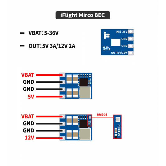 iFlight Micro 2-8S BEC - 5V- 3 Amp / 12V 2 Amp Output