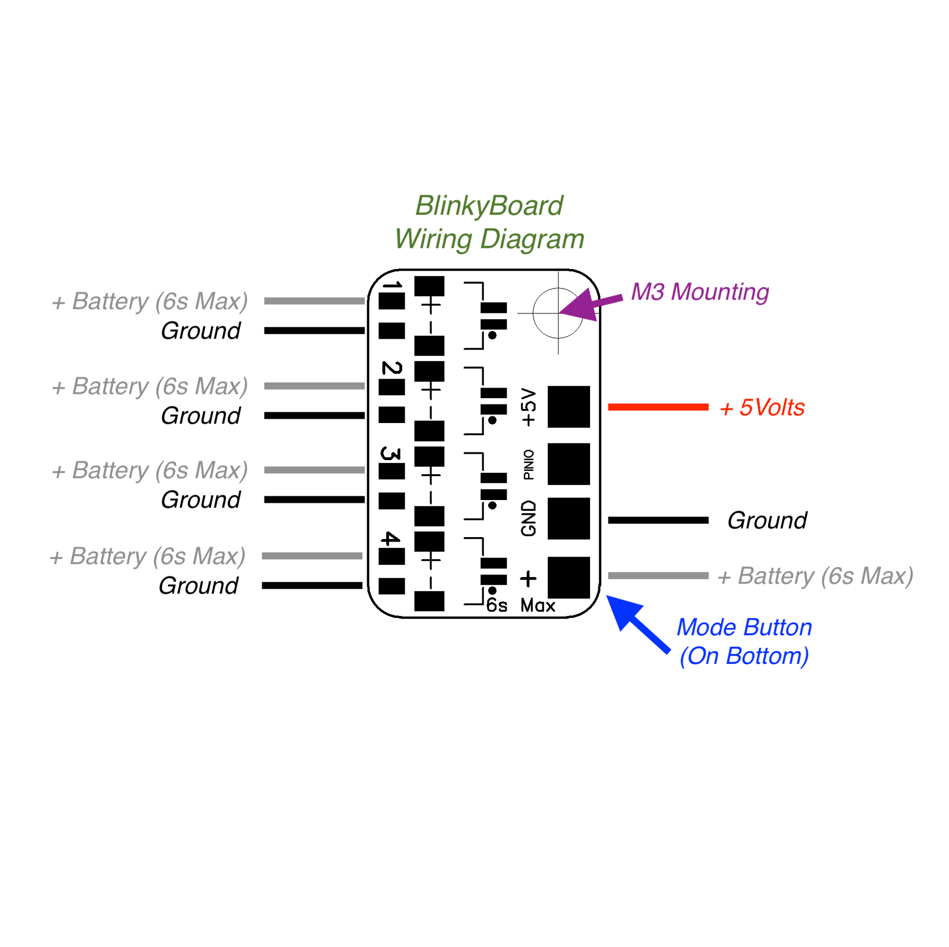 Multiple Blinking modes selectable via button or PINIO signal from flight controller or other digital 3-5v input.
