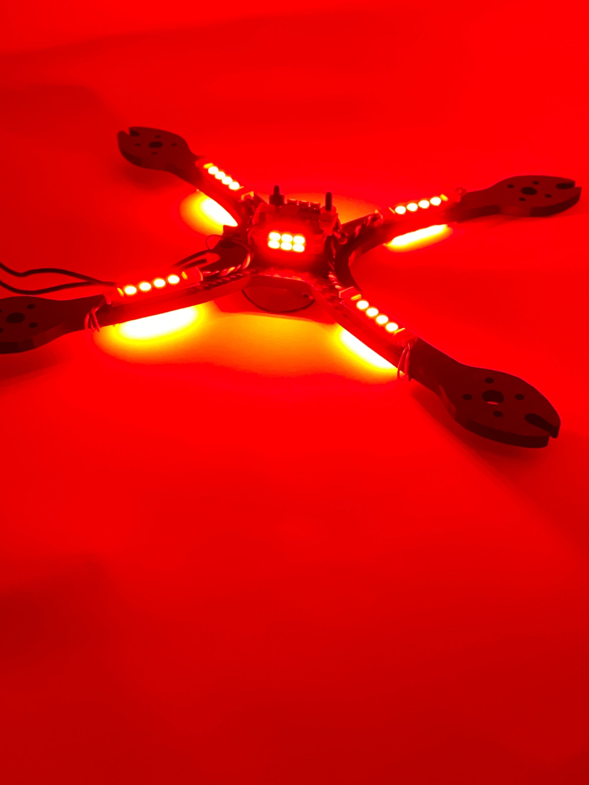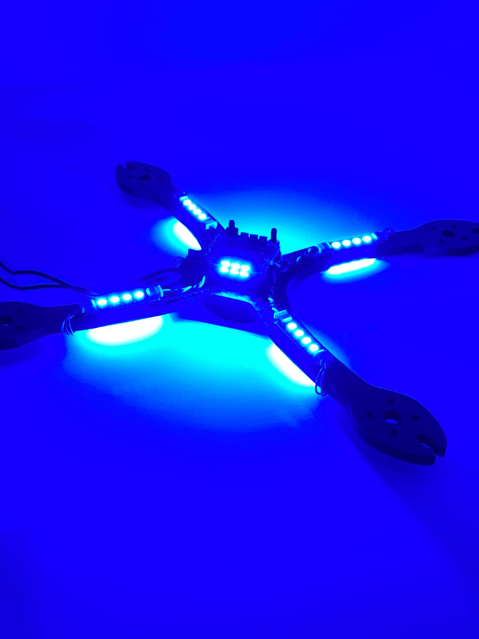 48 LEDs and only soldering 3 wires? LEDs are even easier to add to your quad. 6x leds per side of quad and 8 per arm. Perfect for international races where LEDs are required.