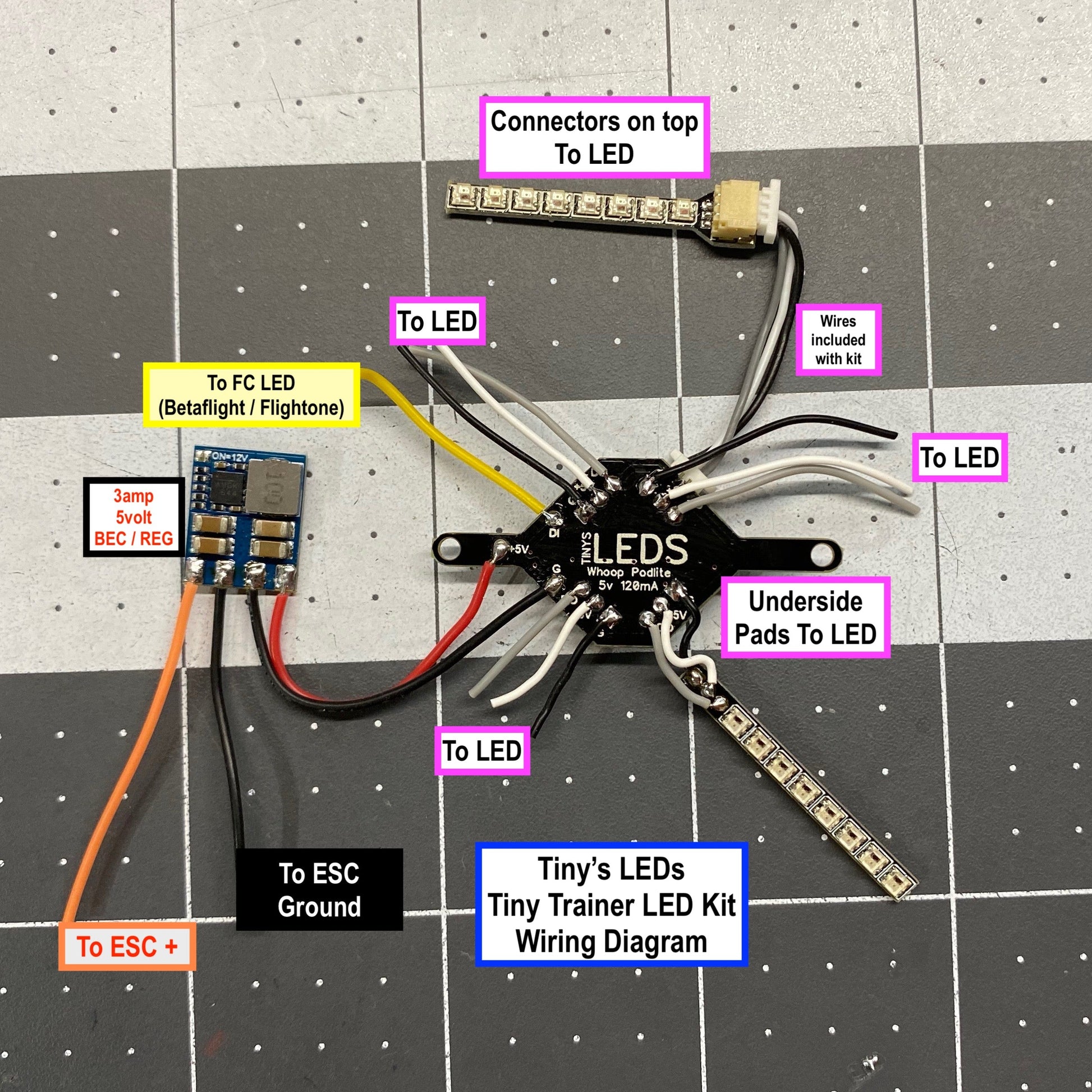 Notes. The LEDs for the arms are a tight fit and are mean to press fit in to the plastic notched area. They will not rest on your motor wires. If they do not fit you may need to shave off the edge of the PCB with a file or razor blade.