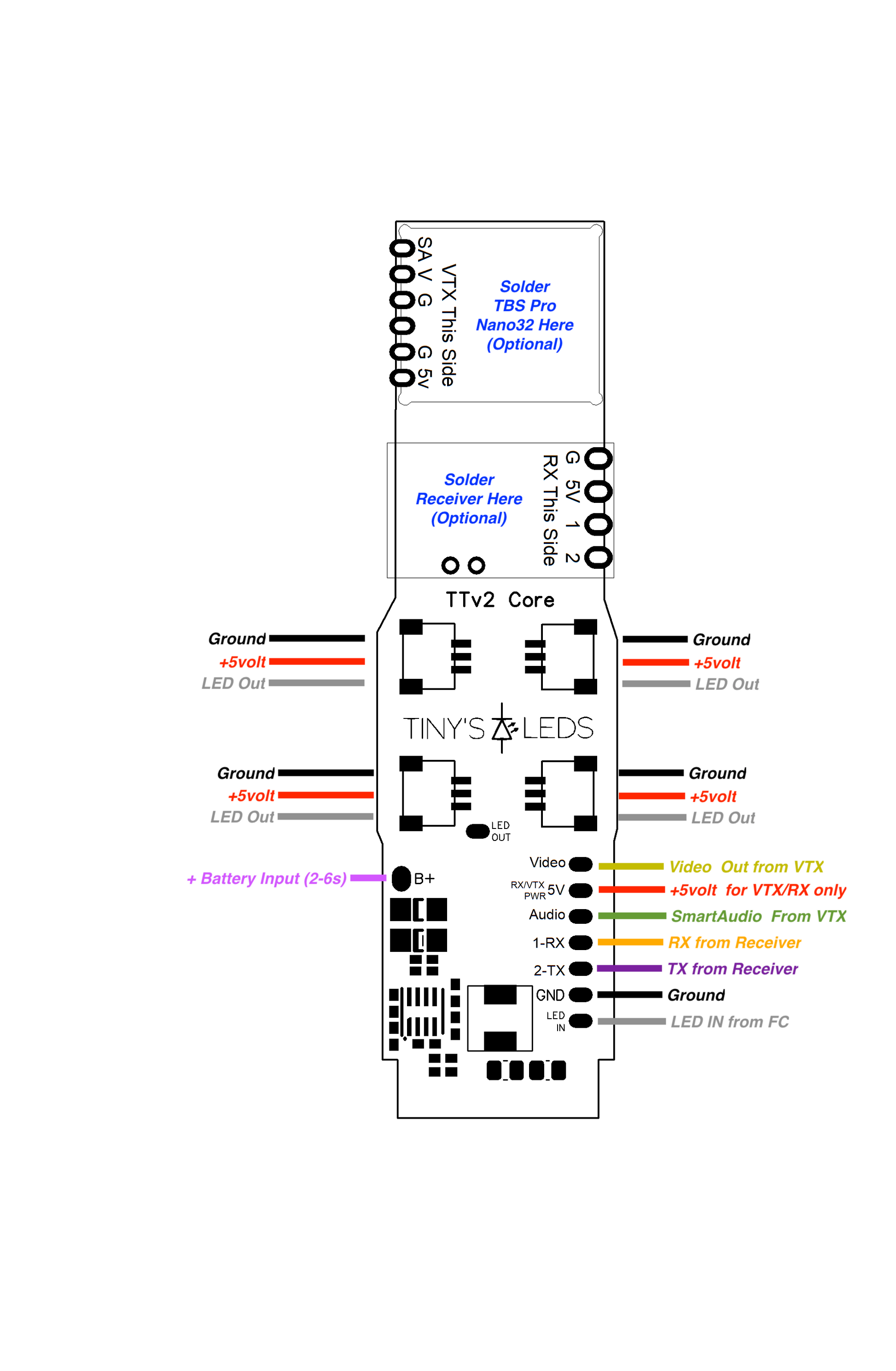 New Feature!!: Added easy mounting for TBS Unify Pro32 and standard RX that follows the 2.54mm pitch of the TBS Unify & Tracer RXs.